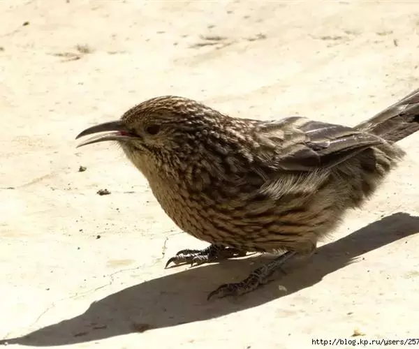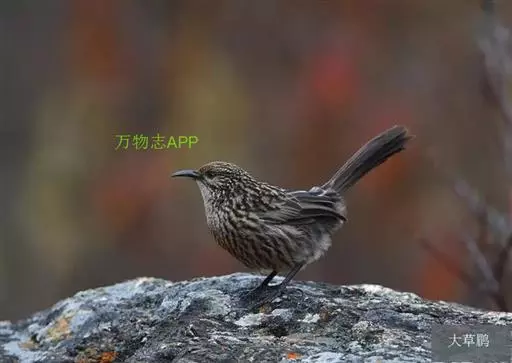 大草鹛(学名:Babax waddelli)中型鸟类,体长31~34厘米。上体灰色具粗著的黑褐色条纹,腰和尾上覆羽纵纹不明显。颊和耳羽灰色,髭纹由黑色点斑组成,其间杂有灰色。颏、喉和上胸灰色具细的黑色羽干纹,嘴较长而下曲。特征极明显,野外不难识别。