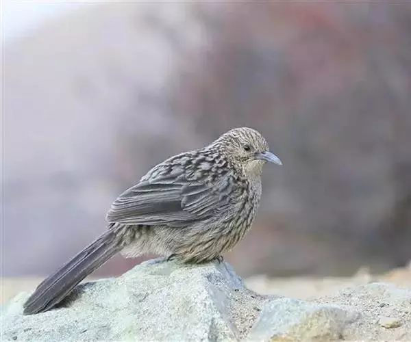 五六只成群,藏隐于干旱灌丛的稠密林下植被中,在落叶间翻拣觅食。鸣声为一连串颤抖的哨音而似鸫;叫声沙哑似喘息。