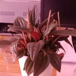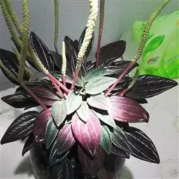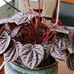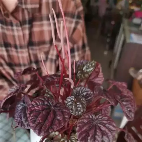 红背椒草 又名雪椒草、赤背椒草,为斧叶椒草椒草的相似种。植株矮小,易分枝,直立生长,高5厘米至8厘米,肉质茎暗红色。叶片肥厚多肉,对生或轮生,具细短柄,叶片椭圆形,两侧向上翻,使叶面中间形成一浅沟,背面有龙骨状突起,叶面暗绿色,有光亮,稍呈透明状,叶背则为暗红色。穗状花序,小花绿色,春夏季节开放。