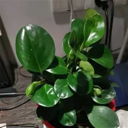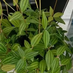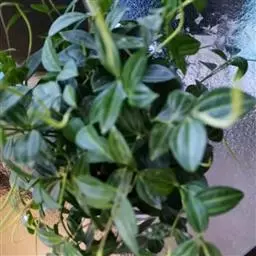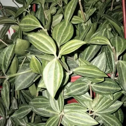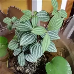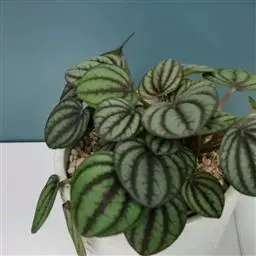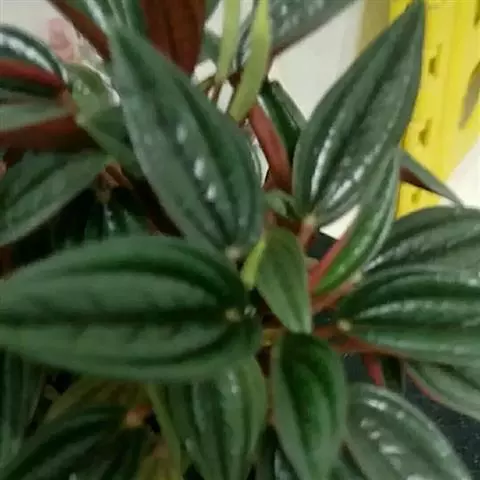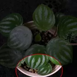 西瓜皮椒草 又称西瓜皮豆瓣绿、西瓜皮、银白斑椒草。植株无茎或具短茎,叶近基生,具红色长柄,叶片着生密集,盾形或倒卵形,厚实而光滑,半革质,叶面浓绿色,具半月形的银白色条纹。穗状花序,细小的花朵白色。