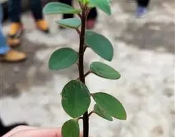 圆叶椒草(Peperomia obtusifolia)直立性植株,高约30 cm。单叶互生,叶椭圆形或倒卵形。叶端钝圆,叶基渐狭至楔形。叶面光滑有光泽,质厚而硬挺,茎及叶柄均肉质粗圆。叶长5~6 cm,宽4~5 cm,叶柄较短,只有1 cm,但生根容易。节间较短,节间处也极易生根。