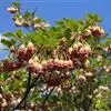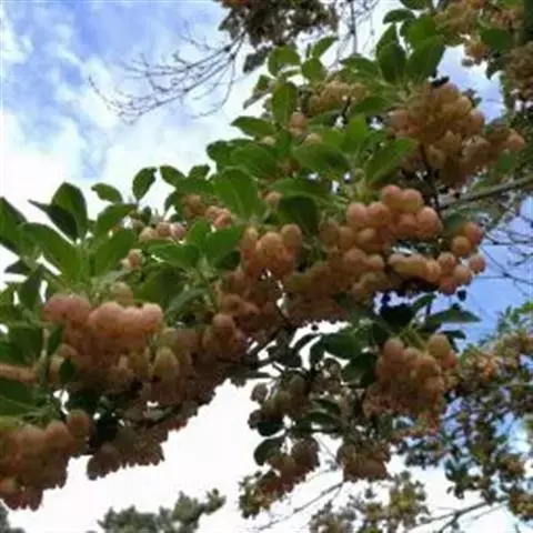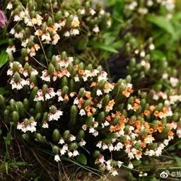 花数朵组成顶生伞形花序;花梗长8-12毫米;花萼盘状,小,绿色,上部5裂,裂片三角形,长2-3毫米;花冠白色,坛形,长8-9毫米,宽6-7毫米,近口部缢缩,5裂,裂片卵状三角形,长1-1.2毫米;雄蕊10,花药具2芒;花柱丝状,内藏。