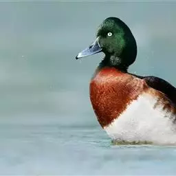 青头潜鸭,是雁形目鸭科潜鸭属的迁徙性鸟类。雄性头部和颈部为黑色,有绿色光泽,上体为黑褐色,…