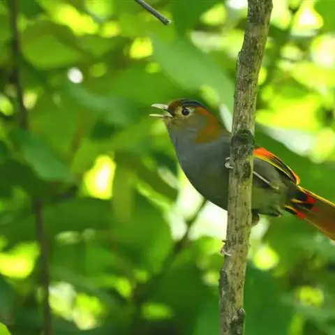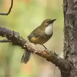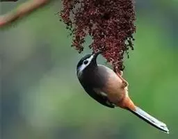 习性: 斑喉希鹛 繁殖期间成对活动,其他季节多成3~5只或10余只的小群,有时亦与其他希鹛混群。常在高大乔木树冠层枝叶间、有时也在森林中下层和林下及林缘地区高的灌木枝头活动和觅食。性活泼,行动敏捷,常频繁的在树枝叶间跳跃或飞翔,不时发出“久~违,久~违”的叫声。