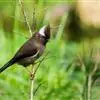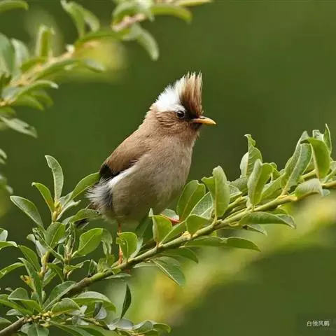 褐头凤鹛小型鸟类,体长12~13厘米。头顶有可竖立的红褐色羽冠,头侧、枕、颊、喉和下体白色,…