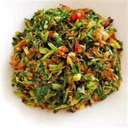梅菜扣肉,汉族传统名菜,属客家菜 。制作材料有五花肉、梅菜、葱白、姜片等。