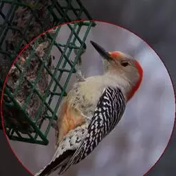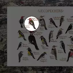 绒啄木鸟,北美洲最小的啄木鸟,白腹黑背和黑项,黑翼上有白色斑点。头部有黑白相间的条纹,尾巴短小,雄…