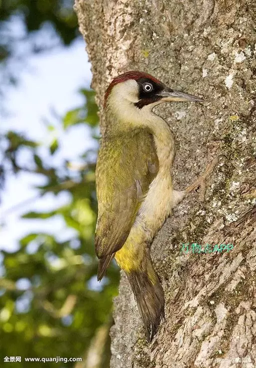 绿啄木鸟是鴷形目啄木鸟科绿啄木鸟属鸟类。雄鸟额和头顶前部辉红色,鲜丽异常;雌鸟头上无红色;嘴尖直,…