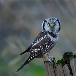 长尾鸮(学名:Surnia ulula)体长35-40厘米,体重247-375克,是一种中等大小及夜间活动的猫头鹰,是猛鸮属下的唯一物种。喙坚强而钩曲。嘴基蜡膜为硬须掩盖。翅的外形不一,第五枚次级飞羽缺。尾短圆,尾羽12枚,有时仅10枚。脚强健有力,常全部被羽,第四趾能向后反转,以利攀缘。爪大而锐。尾脂腺裸出。无副羽,间或留存。耳孔周缘具耳羽,有助于夜间分辨声响与夜间定位。