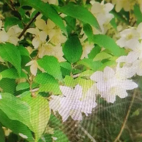 小花溲疏灌木,高约2米;老枝灰褐色或灰色,表皮片状脱落。叶纸质,卵形、椭圆状卵形或卵状披针形。…