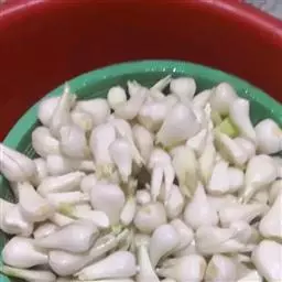 1. 将春天的新蒜去掉最外层的皮,洗净,适量清水加盐(以平时喝汤的咸度为准),将大蒜放入盐水中浸泡1天,目的在消毒、去除辛辣味。