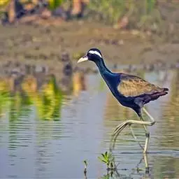 铜翅水雉雉鸻科铜翅水雉属的一种物种,是小型涉禽,体长28-31厘米。头颈、下体黑色,具金属色辉。…