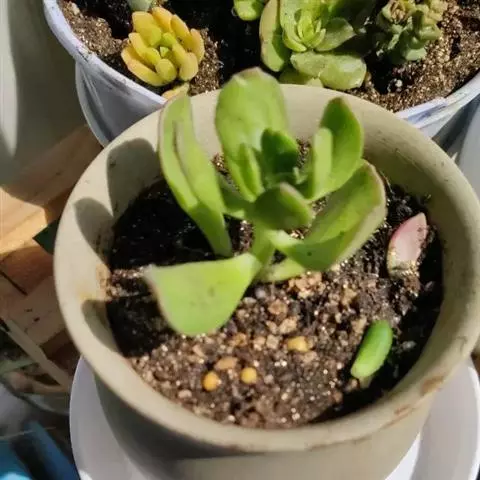 叶插:剪取健壮、成熟的肉质叶,晾1至2天后平放于沙土或蛭石上,注意使叶片的基部与扦插介质结合紧密,以后保持湿润,20天左右其基部就会有新根、新芽长出。