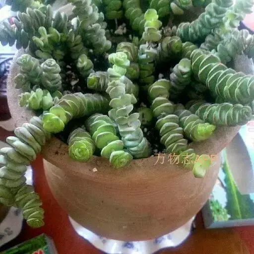 串钱景天,因植株酷似一串串古代的钱币而得名,颇受人们喜爱的小型多肉植物之一。其株型奇特,玲珑可爱,色彩明快悦目,适合用小型工艺盆栽种,也可配以奇石,制成多肉植物小盆景,装饰案头、窗台等处,清新典雅,富有情趣。也可与其他品种的多肉植物合栽于一盆,制成组合盆栽或园艺景箱。