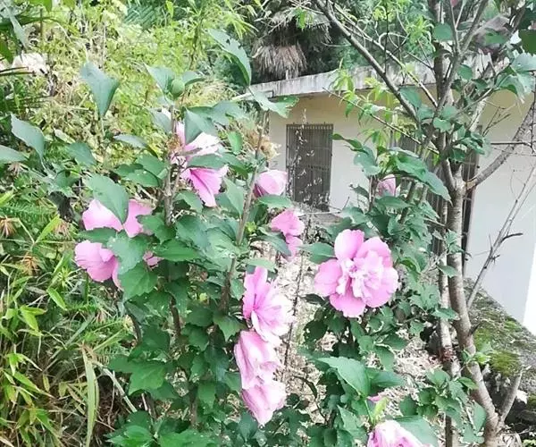 木槿是夏、秋季的重要观花灌木,南方多作花篱、绿篱;北方作庭园点缀及室内盆栽。木槿对二氧二硫与氯化物等有害气体具有很强的抗性,同时还具有很强的滞尘功能,是有污染工厂的主要绿化树种。 花园里的木槿