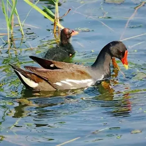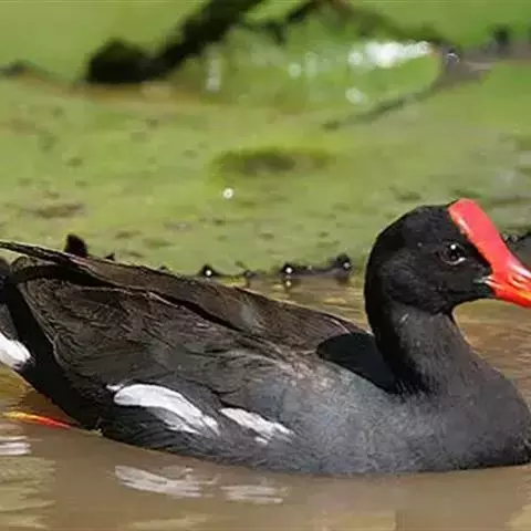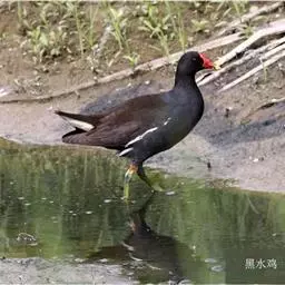 黑水鸡:是鹤形目、秧鸡科的鸟类,共有12个亚种。中型涉禽,体长24-35厘米。嘴长度适中,…