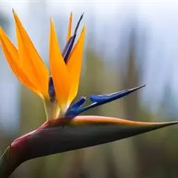 鹤望兰,别名天堂鸟,为鹤望兰科鹤望兰属的一种多年生草本植物;无木质树干;花序生于与叶柄近等长或稍短的花序梗上,佛焰苞1;花较小,萼片橙黄色,长7.5-10厘米,箭头状花瓣基部具耳状裂片,暗蓝色;花期在冬季。该物种原产非洲南部,在中国南方大城市的公园、花圃有栽培,北方则为温室栽培。性喜温暖湿润、阳光充足的气候,适宜生长的温度为25℃左右,耐干旱、较耐寒、不耐水湿,要求疏松肥沃、排水良好,以土层深厚的沙壤土为宜。因花形美丽似鹤,花开时犹如仙鹤翘首远望,花朵寿命亦长,故中文名为鹤望兰。鹤望兰素有“鲜切花之王”的美誉,是一种名贵的观赏花卉,深受广大消费者喜爱。同时,鹤望兰也宜大盆栽植,布置在公园、客厅、会议室、展厅候机室等处。鹤望兰是美国洛杉矶市的官方花卉象征。