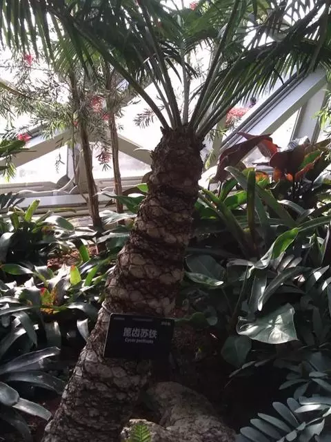 攀枝花苏铁是苏铁科苏铁属植物,棕涧状常绿植物,高1-2.5米,茎干通常单一,覆被着宿存的叶柄基部。…