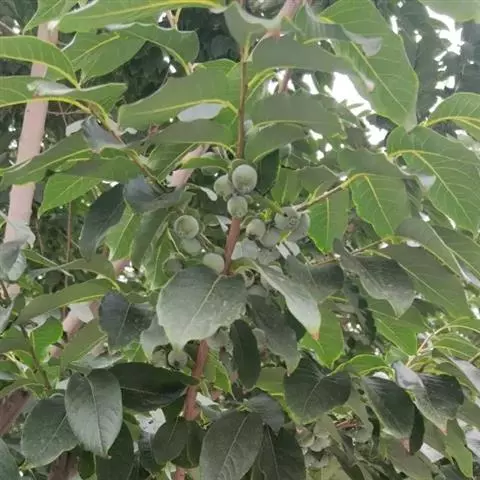 柿,是柿科柿属乔木植物。其叶呈椭圆形或近圆形,新叶稀疏且有柔毛,老叶上面是深绿色,有光泽,下面绿色,…