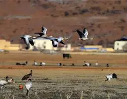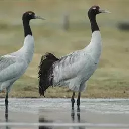 黑颈鹤:是鹤科、鹤属的大型涉禽,体长110-120厘米,体重4-6千克。颈、脚甚长,通体羽毛灰白色,…