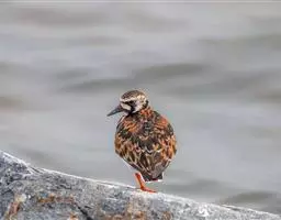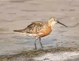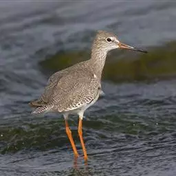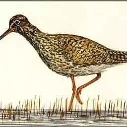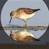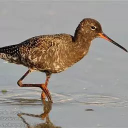 红脚鹬:体长28厘米,上体褐灰,下体白色,胸具褐色纵纹。飞行时腰部白色明显,次级飞羽具明显白色外缘。…