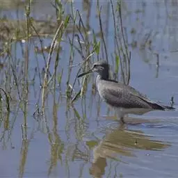 青脚鹬(学名:Tringa nebularia)是鸻形目鹬科的鸟类。体长30-35厘米,翼展53-60厘米,体重140-270克,寿命12年。上体灰黑色,有黑色轴斑和白色羽缘。下体白色,前颈和胸部有黑色纵斑。嘴微上翘,腿长近绿色。飞行时脚伸出尾端甚长。栖息于苔原森林和亚高山杨桦矮曲林地带的湖泊、河流、水塘和沼泽地带,以虾、蟹、小鱼、螺、水生昆虫和昆虫幼虫为食。常单独或成对在水边浅水处涉水觅食,有时也进到齐腹深的深水中。繁殖于欧洲北部、俄罗斯,往东一直到西伯利亚,往北到北极附近,往南至爱沙尼亚、贝加尔湖和黑龙江下游。越冬于地中海、波斯湾、非洲、阿拉伯、伊朗、印度、斯里兰卡、新几内亚、澳大利亚、新西兰、菲律宾、中南半岛和中国台湾、海南岛、东南沿海和长江流域,西达西藏南部。