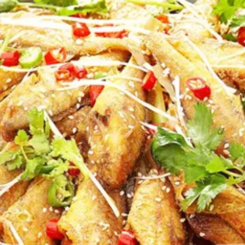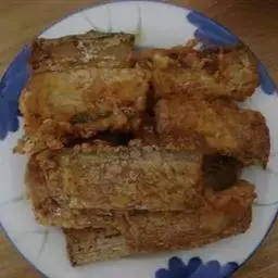 调料:姜10克,花椒5克,八角5克,淀粉(豌豆)10克,盐5克,植物油50克。 干炸带鱼