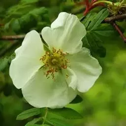 峨眉蔷薇,是蔷薇科蔷薇属直立灌木植物。峨眉蔷薇的小枝无刺或有扁而基部膨大皮刺;小叶长圆形或椭圆状长圆形,无毛;叶轴和叶柄有散生小皮刺,离生部分三角状卵形,边缘有齿或全缘;花单生叶腋,萼片披针形,全缘;花瓣白色,倒三角状卵形;蔷薇果倒卵圆形或梨形,熟时亮红色,果柄肥大,宿萼直立;花期为5-6月,果期为7-9月。峨眉蔷薇以产地命名。峨眉蔷薇产于中国多地,生于山坡、山脚下或灌丛中。峨眉蔷薇耐干旱,耐瘠薄,对土壤要求不严,在土层深厚、疏松、肥沃湿润且排水通畅的土壤中生长更好。峨眉蔷薇的繁殖方式为播种、扦插、压条。峨眉蔷薇的果实成熟时味甜,可鲜食,也可酿酒,晒干磨粉掺入面粉可作食品,其果实中含有糖及维生素等。峨眉蔷薇的果实不仅可以食用,还可入药,有止血、止痢、涩精之效。除此之外,峨眉蓄薇根皮含鞣质,可提制烤胶。