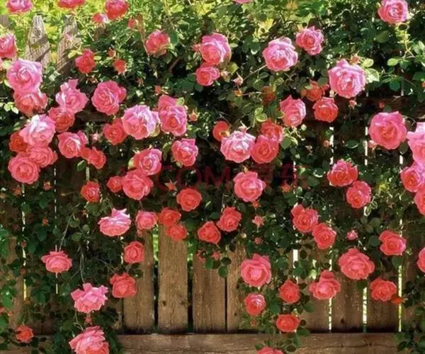 蔷薇(学名:Rosa sp.):是蔷薇属部分植物的通称,主要指蔓藤蔷薇的变种及园艺品种。大多是一类藤状爬篱笆的小花,是原产于中国的落叶灌木,变异性强。茎刺较大且一般有钩,每节大致有3、4个;叶互生,奇数羽状复叶,小叶为5-9片,叶缘有齿,叶片平展但有柔毛。花常是6-7朵族生,为圆锥状伞房花序,生于枝条顶部,花径约3厘米,每年只开一次。蔷薇花花盘环绕萼筒口部,有白色、黄色等多种颜色。花谢后萼片萼片会脱落;果实为圆球体。