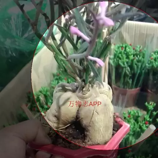 人参大戟,是典型块茎状多肉植物的代表性种类之一。黄褐色人参状茎基膨大多肉,顶生灰绿色柔枝,青绿色狭形小叶交互对生,枝端缀满桃色小花。形态精巧灵秀、古咄奇巧。可与柔美雅秀、风姿宜人的“人参榕”盆景相媲美,深受爱好者的青睐。
