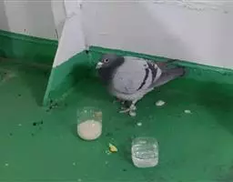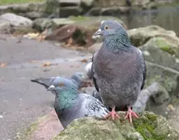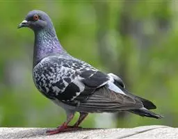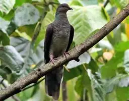 大小和野鸽相似,但体稍侯长些,通体深灰,颈基部两侧有一黑色羽斑羽缘镶以新月型白色。尾羽黑色,但外侧稍短者是明显白端,在降落地面尾展开时成为可见。