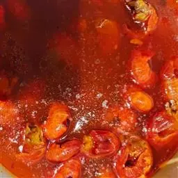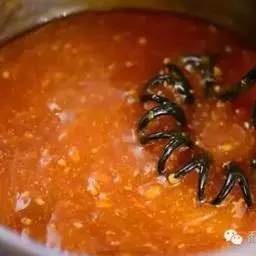 锅中留底油,烧热后将花椒和干辣椒放入,用小火煸炸出香味,随后放入大葱段。
