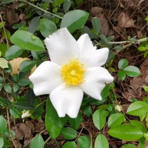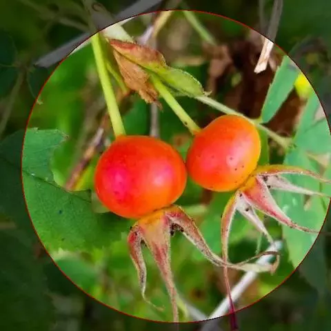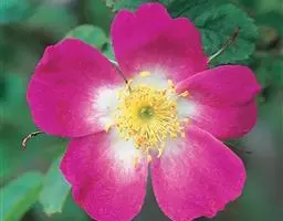 该变种枝条圆筒状,有宽扁皮刺,小叶片3-5,花瓣红色,单瓣,萼片常全缘,稀具少数裂片。
