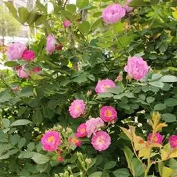 绿化新秀——藤本月季为蔷薇亚科蔷薇属藤性灌木,植株较高大。每年从基部抽生粗壮新枝,于二年生藤枝先端长出较粗壮的侧生枝。属四季开花习性,但也只以晚春或初夏二季花的数量最多,攀援生长型,根系发达,抗性极强,枝条萌发迅速,长势强壮,一株年萌发主枝7-8个,每个主枝又呈开放性分枝,年最高长势可达5米,具有很强的抗病害能力。管理粗放、耐修剪、花型丰富、四季开花不断(也有一部分是1季开花或2季开花型),花色艳丽、奔放、花期持久、香气浓郁。花色有朱红、大红、鲜红、粉红、金黄、橙黄、复色、洁白等,二年生节间发芽,全身开花花头众多,可形成花球、花柱、花墙、花海、花瀑布、拱门形、走廊形等景观。