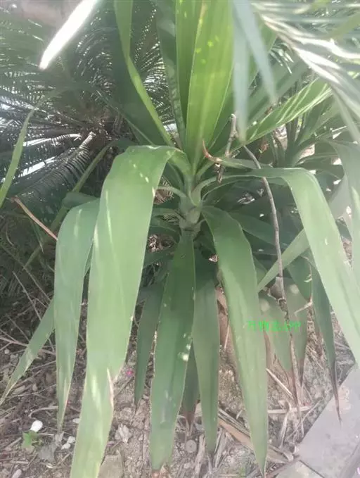 叶聚生在茎、分枝或小枝顶端,互相套迭,剑形,薄革质,长50- 00厘米,宽2-5厘米,向基部略变窄而后扩大,抱茎,无柄。