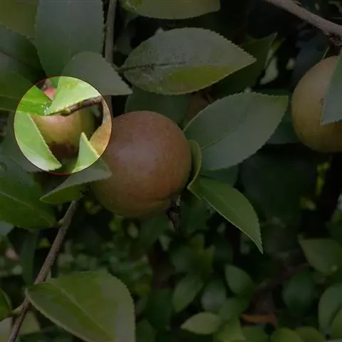蒴果扁球形,高4.5厘米,宽5.5厘米,3爿裂开,果爿厚7毫米,种子卵球形,长约1.5厘米。在云南产的各种红花山茶当中,该种的叶及花最大,雄蕊无毛。