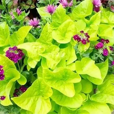 金叶番薯是旋花科番薯属的多年生草本植物。茎略呈蔓性;叶呈心形或不规则卵形,全缘或有分裂,叶色为黄绿色,…