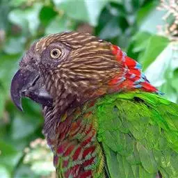 鹰头鹦鹉:鹰头鹦鹉体长35厘米,体重190-277克。额头和顶冠具柔和的白色,眼先深褐色,…