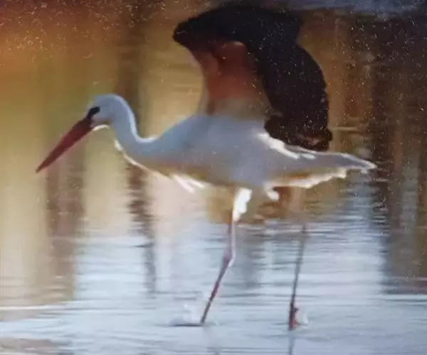 中国浙江台州天台籍著名散文家陆蠢写了一篇《鹤》,文中叙述他十七八岁时,邻哥儿在平头潭边捉到一只鸟,“长脚尖喙,头有缨冠,羽毛洁白”。开始,以为是一只鹤,抢回家里养,只见这只鸟“样子确相当漂亮,瘦长的脚,走起路来大模大样,象个“宰相步”、“头上有一簇缨 毛,略带黄色,尾部很短”、“老是缩着头颈,有时站在左脚上,有时站在右脚上,有时站在两只脚上,用金红色的眼睛斜看着人。”他们将这只鸟养了相当时日,有一天,他的舅父来了,才知道这是一只 “长脚鹭鸶”。 陆蠢所描述的这只漂亮的鸟,实际上应叫“白鹳”,在始丰溪两岸的树林中,芦苇丛里栖居。