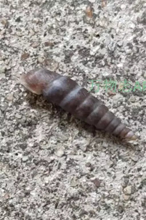 贝壳较小,成体高7~10毫米,宽3~4毫米,尖圆锥形,有6~9个螺层。壳质厚,较坚硬,壳面光滑或有粗的或细弱的纵肋,底螺层较膨大。壳面淡灰色,壳口卵圆形,具有黑色框边,外唇背侧有1条粗隆起的唇嵴。