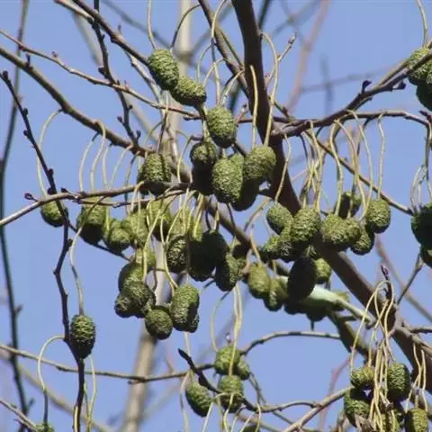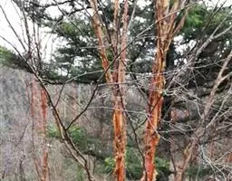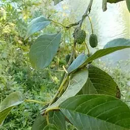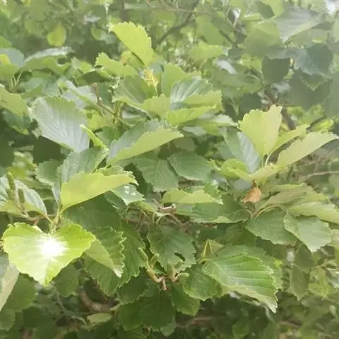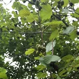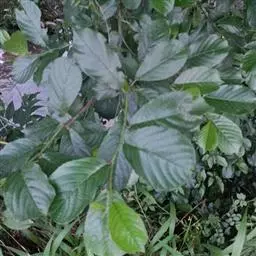 尼泊尔桤木 乔木,高达15米;树皮灰色或暗灰色,平滑;枝条暗褐色,无毛;幼枝褐色,疏被黄色短柔毛或近无毛;芽具柄,具2枚芽鳞,光滑。