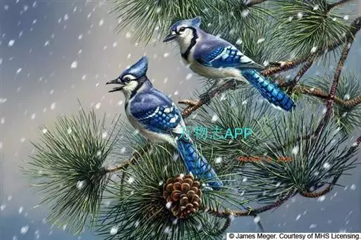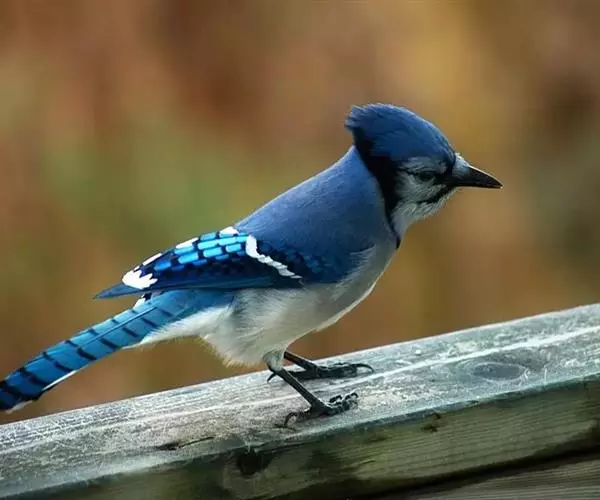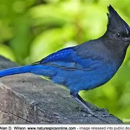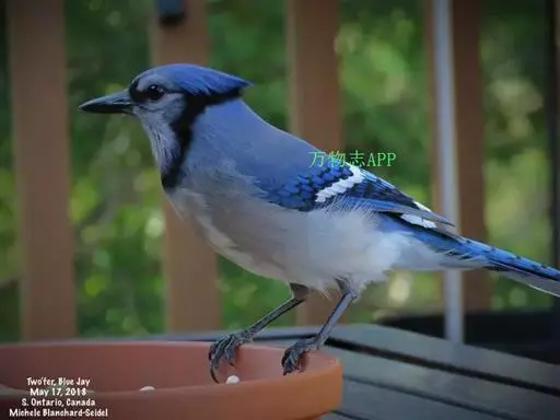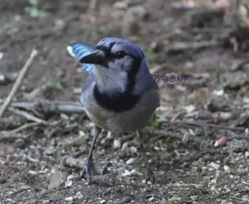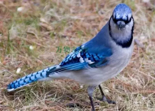 冠蓝鸦(学名:Cyanocitta cristata):体长22-30厘米,体重70-100克,翼展34-43厘米。顶冠明显,羽色为薰衣草蓝或淡蓝色,颈后、翅膀内侧、尾羽内侧和面部为白色。腹部为米白色,颈部有黑色领环,延伸至面部两侧,这些黑色部分的形态有很大的个体差异,有助于冠蓝鸦互相辨认。初级飞羽和尾羽主要为天蓝色,并有明显的黑色和白色线条。雄鸟和雌鸟外形几乎完全相同,雄鸟体型稍大。鸟喙和腿爪黑色,虹膜黑褐色。