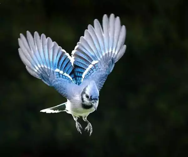 冠蓝鸦飞行速度不算快,平常时速约为32-40千米/小时(9-11米/秒),在开阔的地面时能被鹰和猫头鹰捕获。飞行时,它们身体和尾保持水平,翅膀缓慢的拍打。