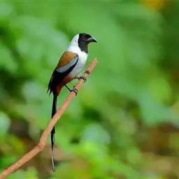 黑额树鹊是雀形目、鸦科的鸟类,体长约38厘米。黑色的尾甚长,上背、背、下腹及尾覆羽棕色。…