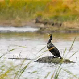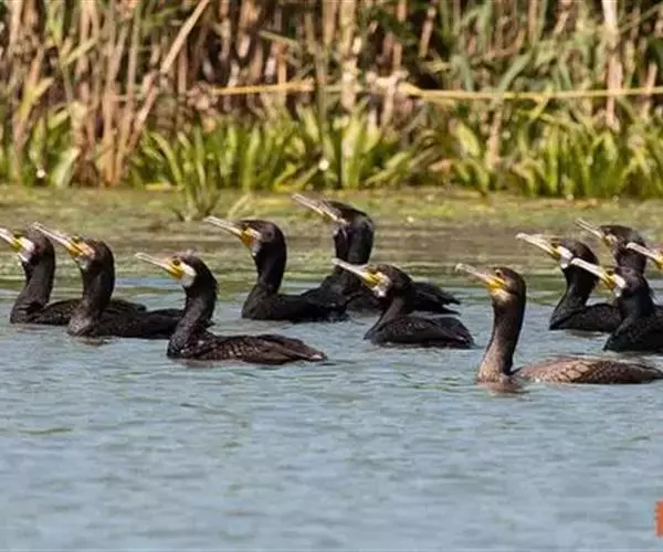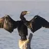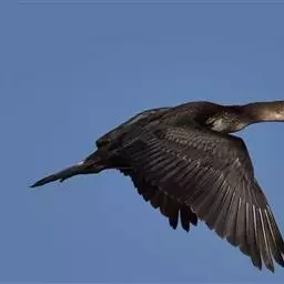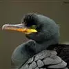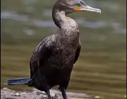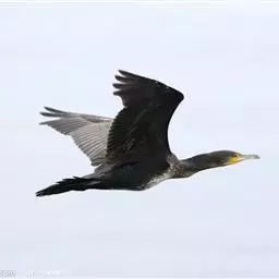 普通鸬鹚(学名:Phalacrocorax carbo)是大型水鸟。体长72-87厘米,体重大于2千克。通体黑色,头颈具紫绿色光泽,两肩和翅具青铜色光彩,嘴角和喉囊黄绿色,眼后下方白色,繁殖期间脸部有红色斑,头颈有白色丝状羽,下胁具白斑。