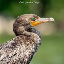 虹膜翠绿色,眼先橄榄绿色,眼周和喉侧裸露皮肤黄色,上嘴黑色,嘴缘和下嘴灰白色,喉囊橙黄色,脚黑色。