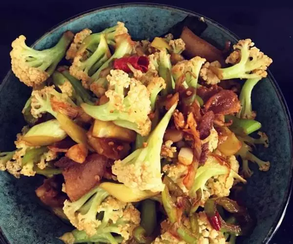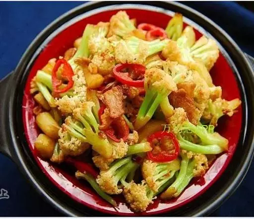 2、腊肉选肥一点的是要借助腊肉煸炒出来的油炒至这道菜,菜会很香,虽然看不到肉,偶尔看到几个肉渣而已。所以干锅菜花不是纯素菜,有腊肉油在,肯定香,所以放入炒菜油的时候一定是平时量的一半或者三分之一,虽然干锅菜油大,但是从健康角度说,少点没坏处。