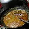 5、如果有少量汤汁没关系,干锅菜一般都下面架个炉子,点火慢慢烧。