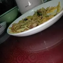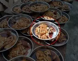2、制做过程不要加一滴水,所有材料放入炒匀后盖锅盖闷两三分钟,再翻炒几分钟就可以了。