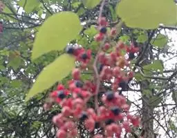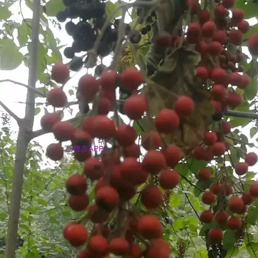 长果山桐子(Idesia polycarpaMaxim. var.longicarpaS. S. Lai):该变种和原变种的区别是:花梗通常比较长,长2.5-3.5厘米;成熟果实通常较大,长1.5-2厘米,直径1.2-1.5厘米,椭圆状长圆形或倒卵形;叶片先端通常呈尾状。花期4-5月,果熟期10-11月。分布于中国广东、广西、江西等省区。生于海拔600-1200米的浅山区阔叶林中。